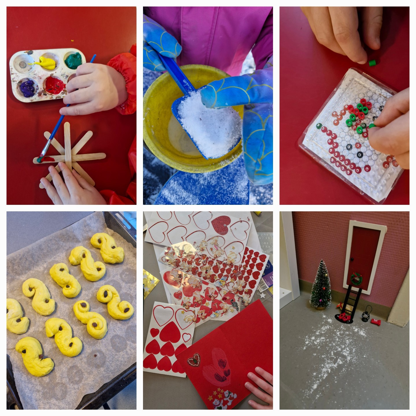 Barna har laget julegaver og vi har hatt juleverksted og ulike formingsaktiviteter. Det har vært stor produksjon av fargelegging og perling hos oss. Det har vært mange spente barn, og til tider høy stemning på avdelingen! Men vi har også hatt rolige dager der vi har kost oss med juleverksted eller åpnet opp mellom avdelingene. Vi håper å ha gitt barna fine opplevelser gjennom perioden.