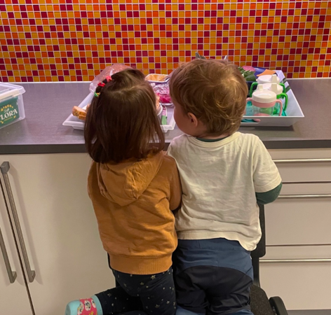 Vi bruker språket hele tiden, som måltider, påkledning, bleieskift og lek. Vi setter ord på det barna gjør og føler, og gir dem tid til å svare og uttrykke seg, også med kropp og lyder. På denne måten får barna erfaring med hvordan vi snakker til og med hverandre på en vennlig og respektfull måte. Etter hvert som barna får et mer verbalt språk, øver vi på å si «takk» til hverandre, «unnskyld», «kan jeg få». Små barn lærer språk raskt, og det er naturlig å koble ord med sosial atferd. Ved å introdusere enkle høflighetsord som «takk», «vær så snill» og «unnskyld» tidlig, får barna erfaring med hvordan man kan samhandle positivt med andre, samtidig som vennlige ord blir en naturlig del av språket. Når disse ordene brukes gjentatte ganger i hverdagen, skapes gode vaner som støtter både språkutvikling og sosial kompetanse.