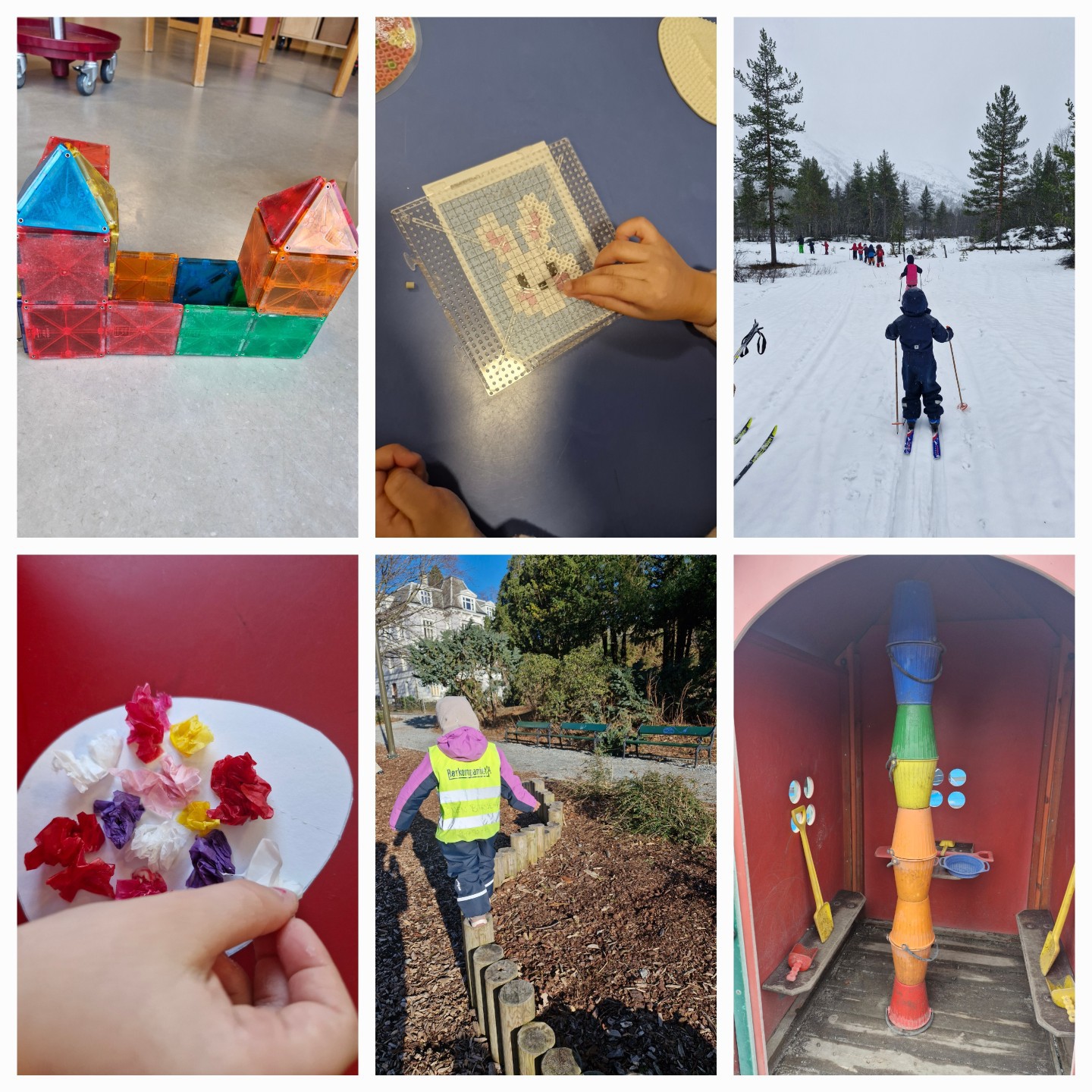 Vi har en gjeng som er veldig glad i spill på avdelingen, både brettspill og puslespill. Så dette vil vi fortsette å legge til rette for i perioden som kommer. Konstruksjonsleker som lego, magneter og klosser og finmotoriske aktiviteter som perling og klipping vil vi også ha fokus på. Hvilke former ser vi rundt oss, en sirkel, firkant, trekant eller rektangel kanskje? Dette skal vi jakte på mens vi går på tur i nærområdet. Dører, hustak, skilt, vinduer og dekk er noen eksempler på former vi finner rundt oss. Kanskje dere ser noen former på vei til eller fra barnehagen?